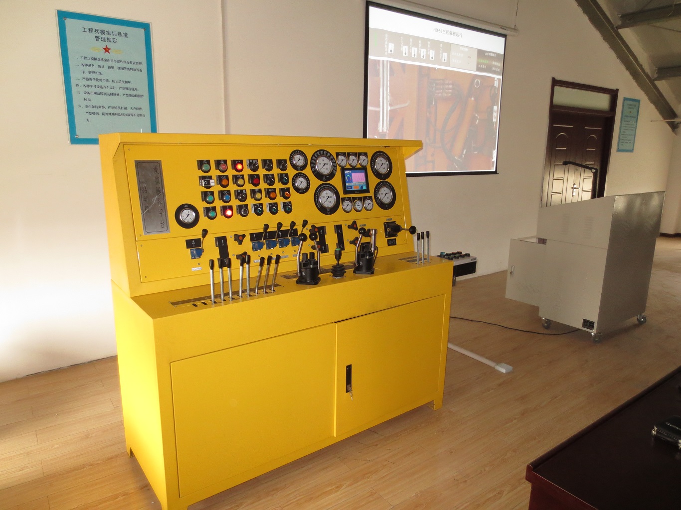 該平臺是進行仿真訓練和教學的專用設備,由操作臺、信號采集系統、仿真計算系統和視頻展示系統組成。設備通過操作平臺和軟件模擬結合的方式,對鉆井機的工作過程進行模擬和視頻演示。利用操作元件末端的電氣改造,采集動作信號,傳遞給PLC之后進行數據篩選運算,再傳遞給上位機,實現作業操作動作的模擬,以文字、圖片、視頻等多媒體方式在顯示界面出現,使操作人員迅速熟悉鉆井機的操作和使用方法,全面掌握裝備的性能,提高操作水平。