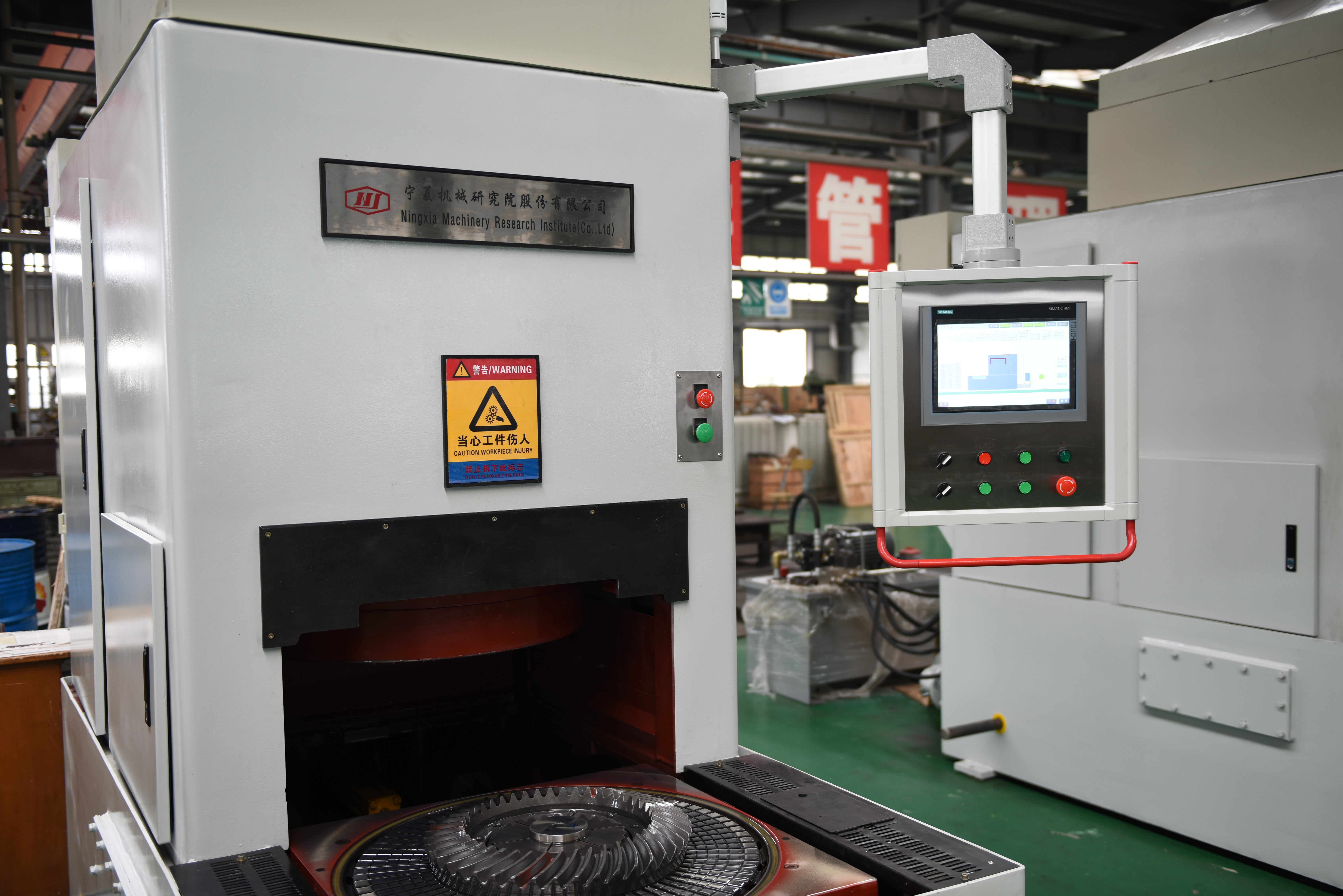CCY-500型齒輪淬火壓床是對(duì)汽車(chē)、工程機(jī)械、拖拉機(jī)、冶金等行業(yè)錐齒輪進(jìn)行淬火的熱處理設(shè)備,同時(shí)其他盤(pán)狀零件也可以在本機(jī)上進(jìn)行淬火。本壓床具有的結(jié)構(gòu)性能,保證了淬火質(zhì)量和變形控制,對(duì)零件尺寸限形及表面硬化處理,零件通過(guò)二次加熱后迅速轉(zhuǎn)移至淬火壓床實(shí)施急速冷卻,并在模具的限形作用下,有效阻止零件的漲縮,減小零件形變和畸變,從而達(dá)到工件尺寸保持一致性和重復(fù)性的目的。